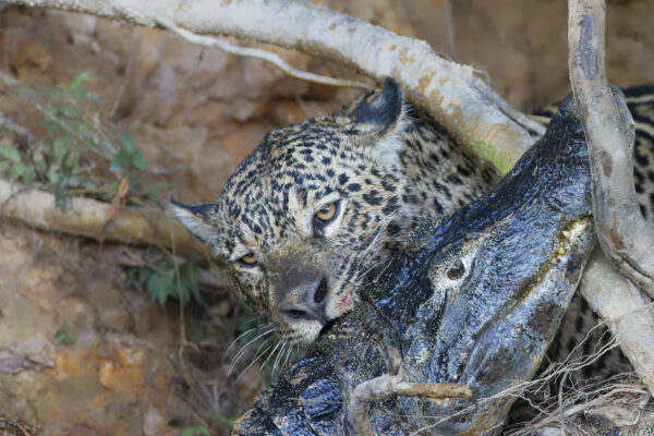 Pour mémoire, les jaguars du Pantanal sont les plus gros au monde parce qu’ils sont extraordinairement bien nourris à partir des innombrables caïmans qui ont élu domicile dans les eaux de ses rivières. Mais le Pantanal est aussi le lieu où ils sont les plus accessibles (au photographe comme au touriste) pour les mêmes raisons.